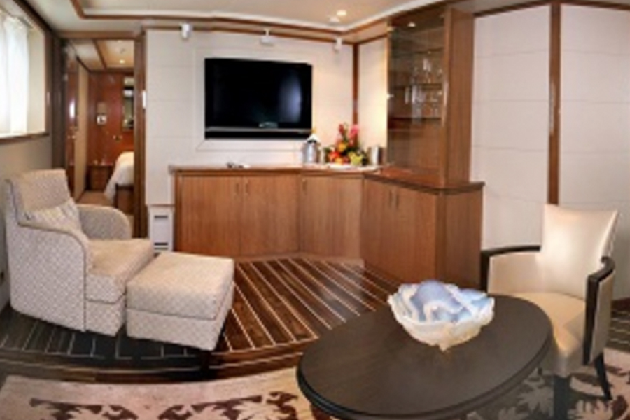 Onboard entertainment facilities include: a casino, a watersports platform, the Compass Rose Cocktail Bar, The Lounge, and The Terrace Bar.